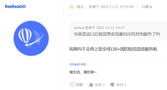 同样是纯流量esim,这个的运营时长似乎和乌龟电信差不多,但是网站上也找不到什么客服通道之类的,只有一个邮箱,乌龟电信至少tg和奶昔都能联系上老板。这家价格也和红茶电信差不多,如果是我的话我就直接去买红茶了,这个还是算了。