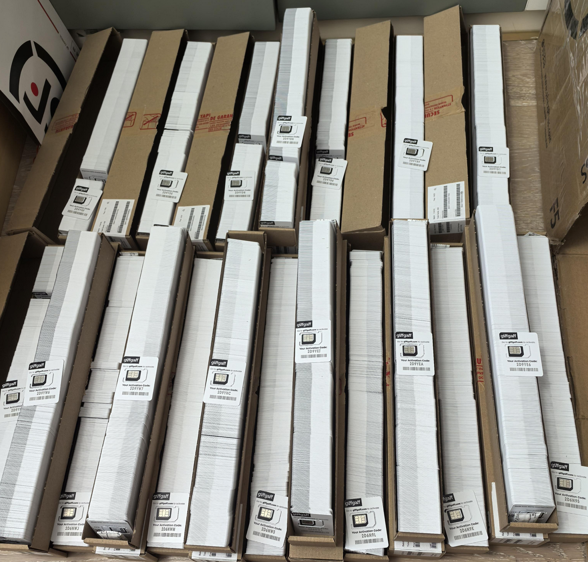 但是随之而来的就是一个致命的缺点,就是gg只有实体卡,到货很慢,毕竟是从英国发来,需要一个多月的时间,走的还不是快递是平邮,大概率丢件,我等不了那么长时间,多等一天我的账号就多一天的风险。而且gg已经停发大陆和香港地址的卡了,官网的理由是“我们发现有人违反我们的条款和条件,在这些地区分发 SIM 卡”。我在网上搜到了一个据称是国内黄牛的人发的照片,并声称有5w张,而且照片里heif信息都没删,结合官方的声明,这个图的真实性不低。